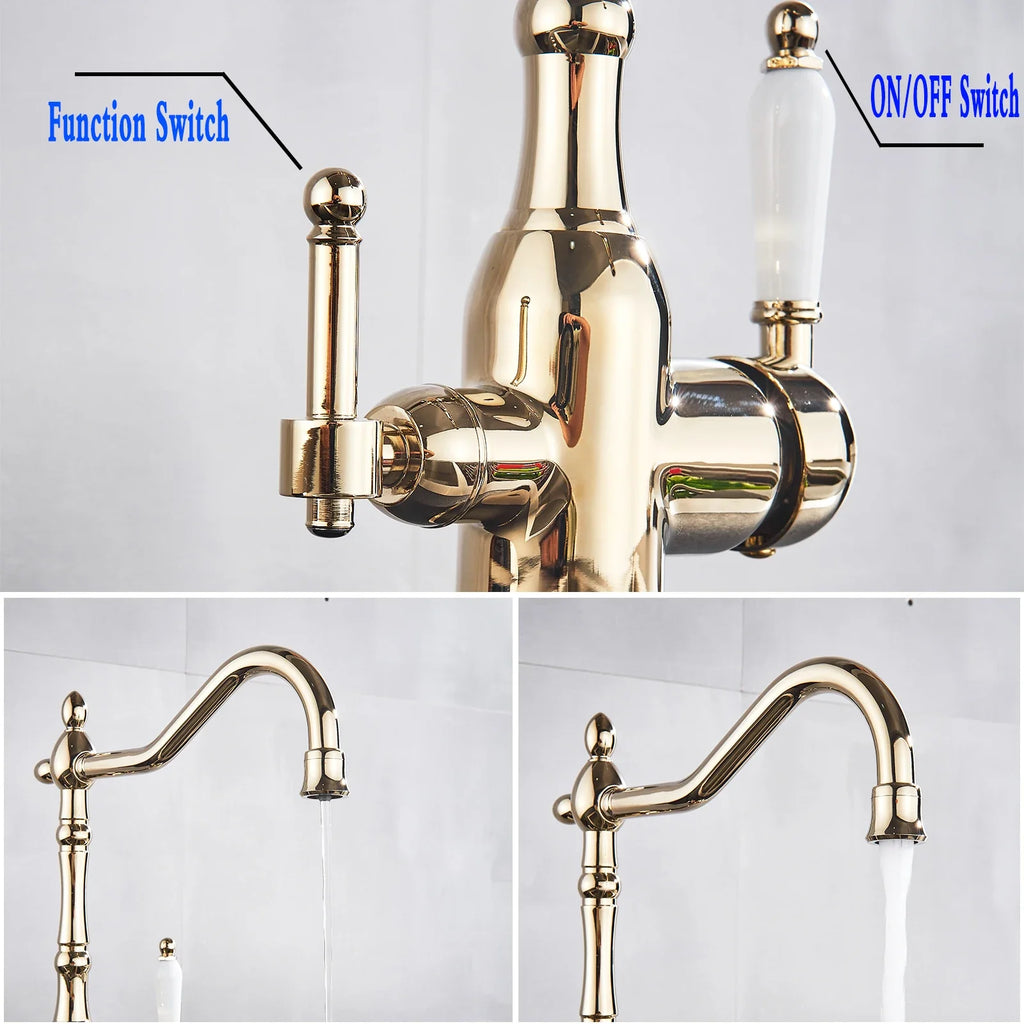 The Afralia™ Gold Kitchen Filter Faucet features a 360-degree rotation for added flexibility and convenience. Whether you need a gentle stream or a powerful spray, this faucet is designed to meet all your requirements with ease.