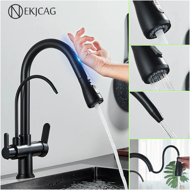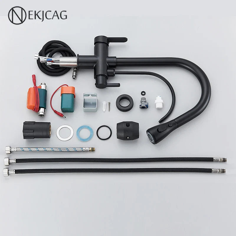 Afralia™ Gourmet Pull Out Black Gold Kitchen Faucet with Sprayer Mixer Swivel Sink Tap