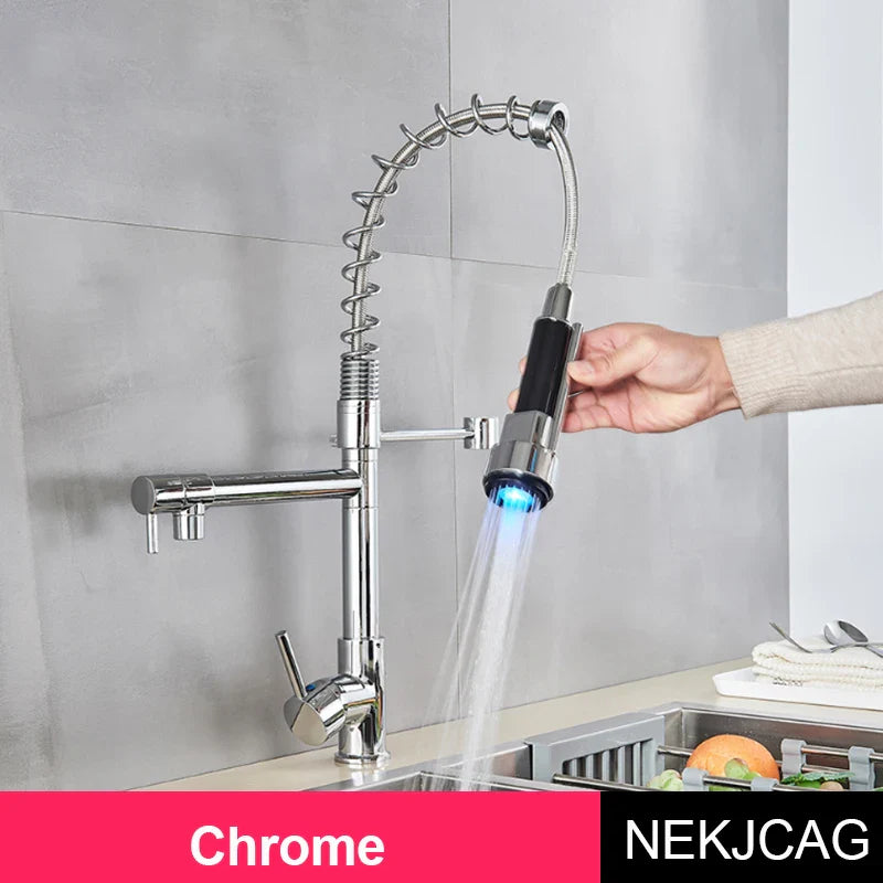 Afralia™ LED Spring Kitchen Faucet: Dual Swivel Spout, Pull Down, Hot Cold Mixer Tap