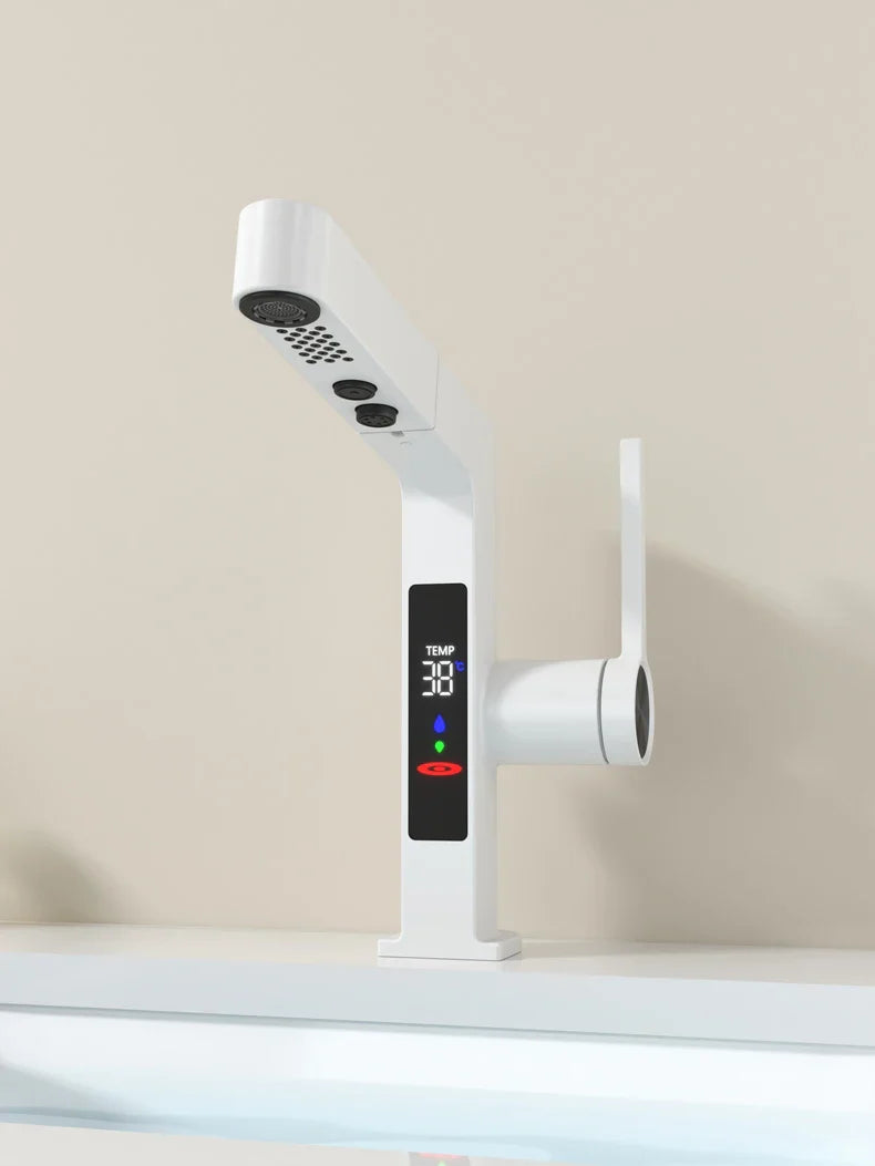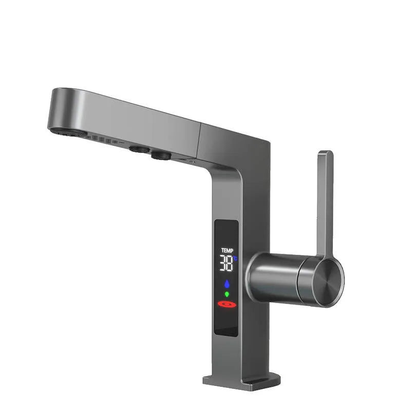 Afralia™ LED Basin Faucet Rose Gold Pull Out Water Mixer Sink Tap