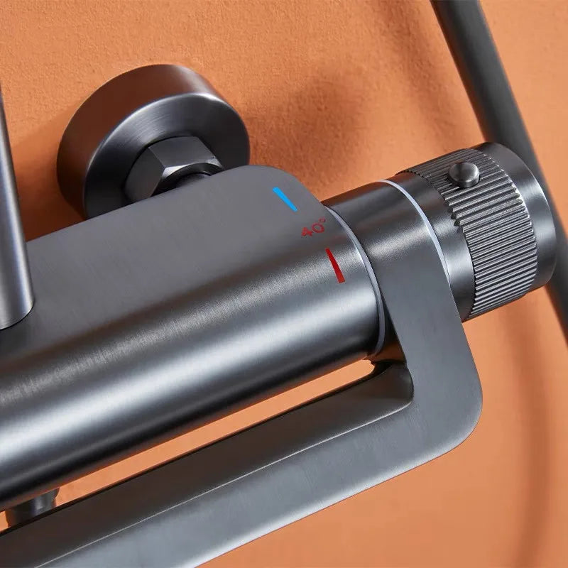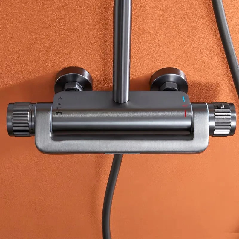 Afralia™ Gray Thermostatic Shower Faucet Set: Brass Rainfall Waterfall Bath and Shower