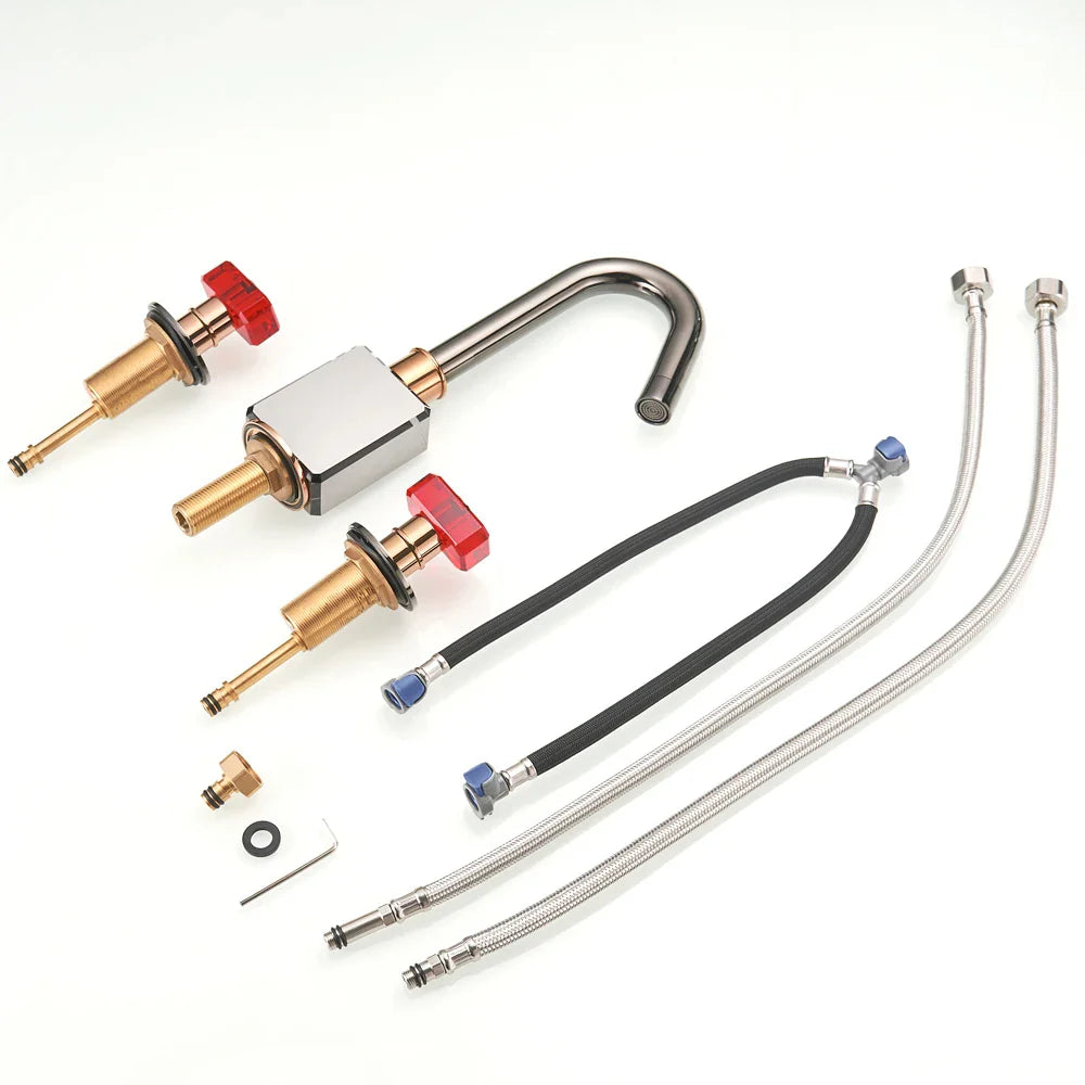 Afralia™ Gray Brass Basin Faucets, Deck Mounted Double Handle Bathroom Sink Tap