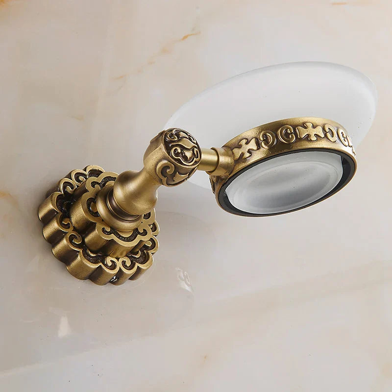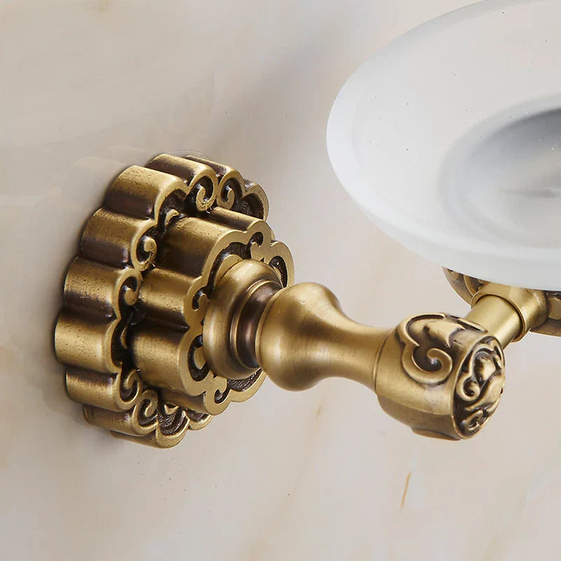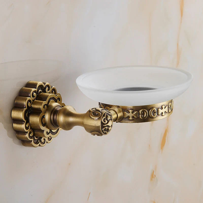 Afralia™ Solid Brass Wall Mounted Soap Holder Antique Finish Art Carving Bathroom Accessories