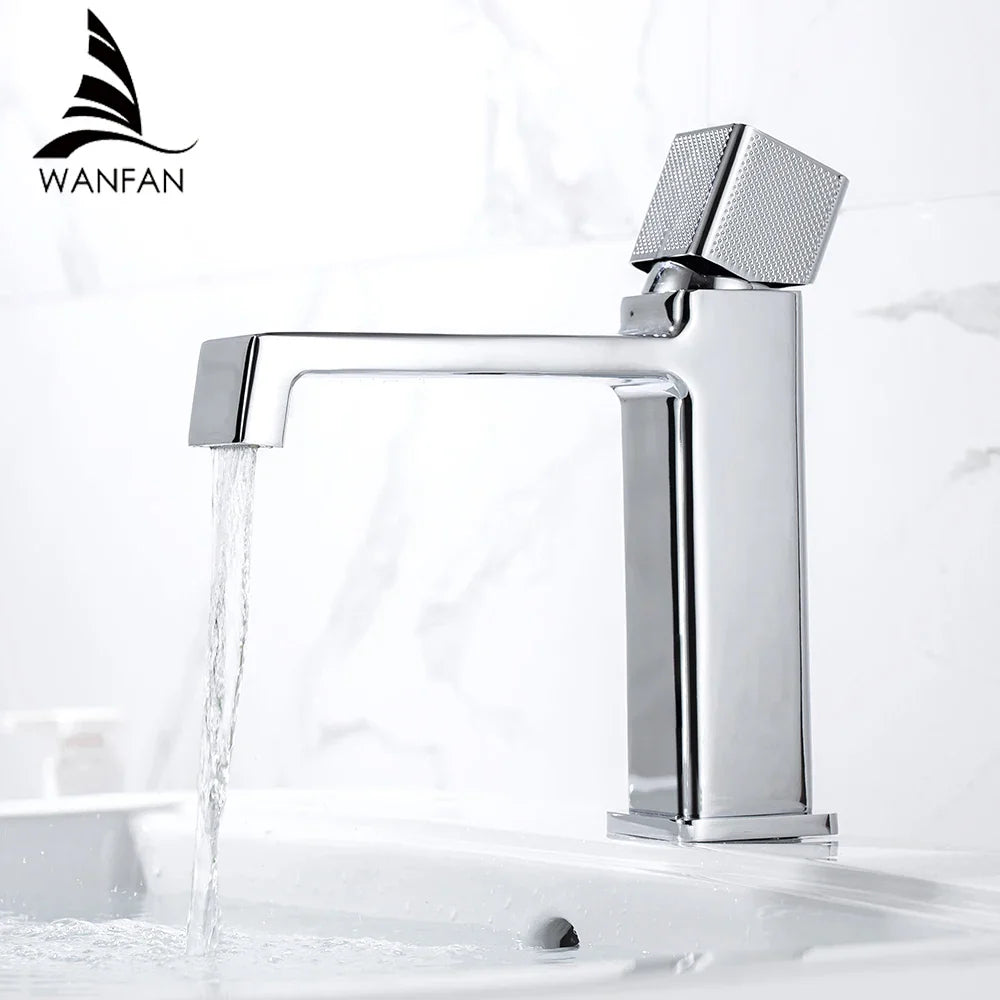 Afralia™ Black Brass Basin Faucet Hot Cold Water Mixer Chrome Finish