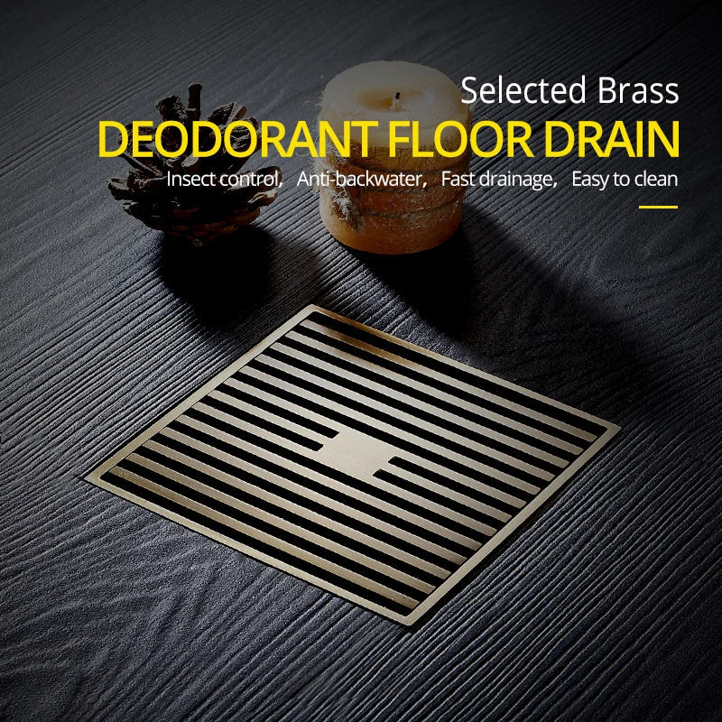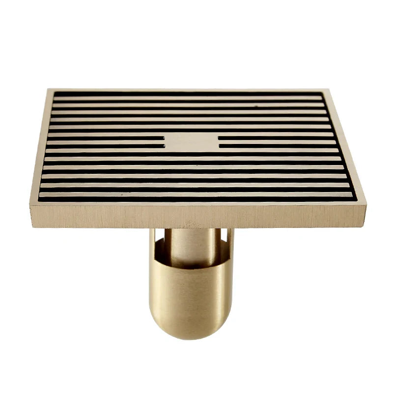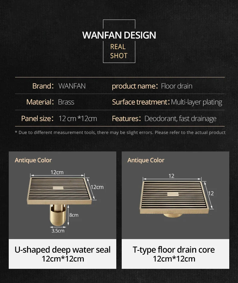 Afralia™ Antique Brass Square Bath Drain Strainer Hair Art Carved Floor Grate Drain