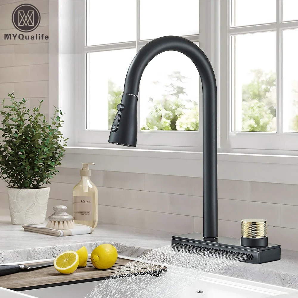 Afralia™ Black Kitchen Faucet 4 Function Brass Single Hole Mixer Deck Mounted