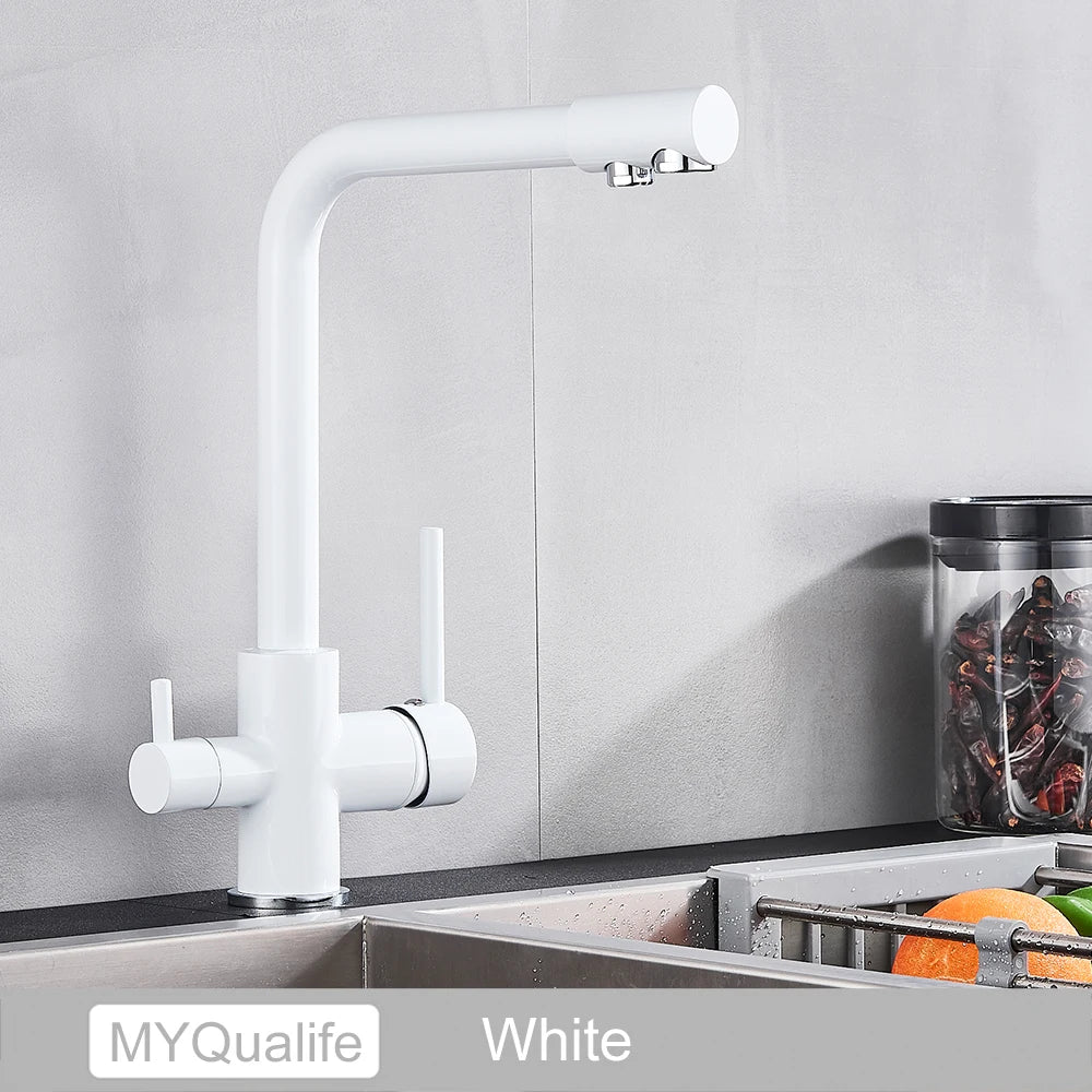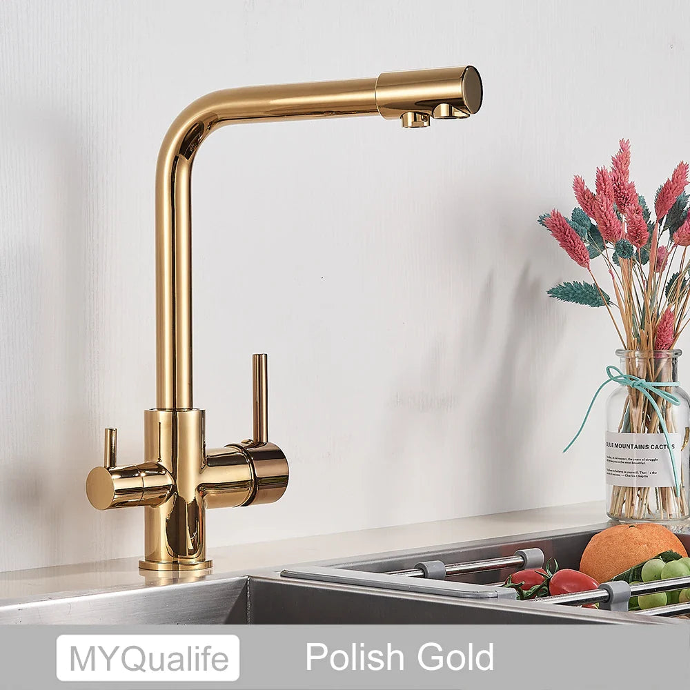 Afralia™ Matte Black Dual Handle Brass Kitchen Faucet with 3-way Water Filter