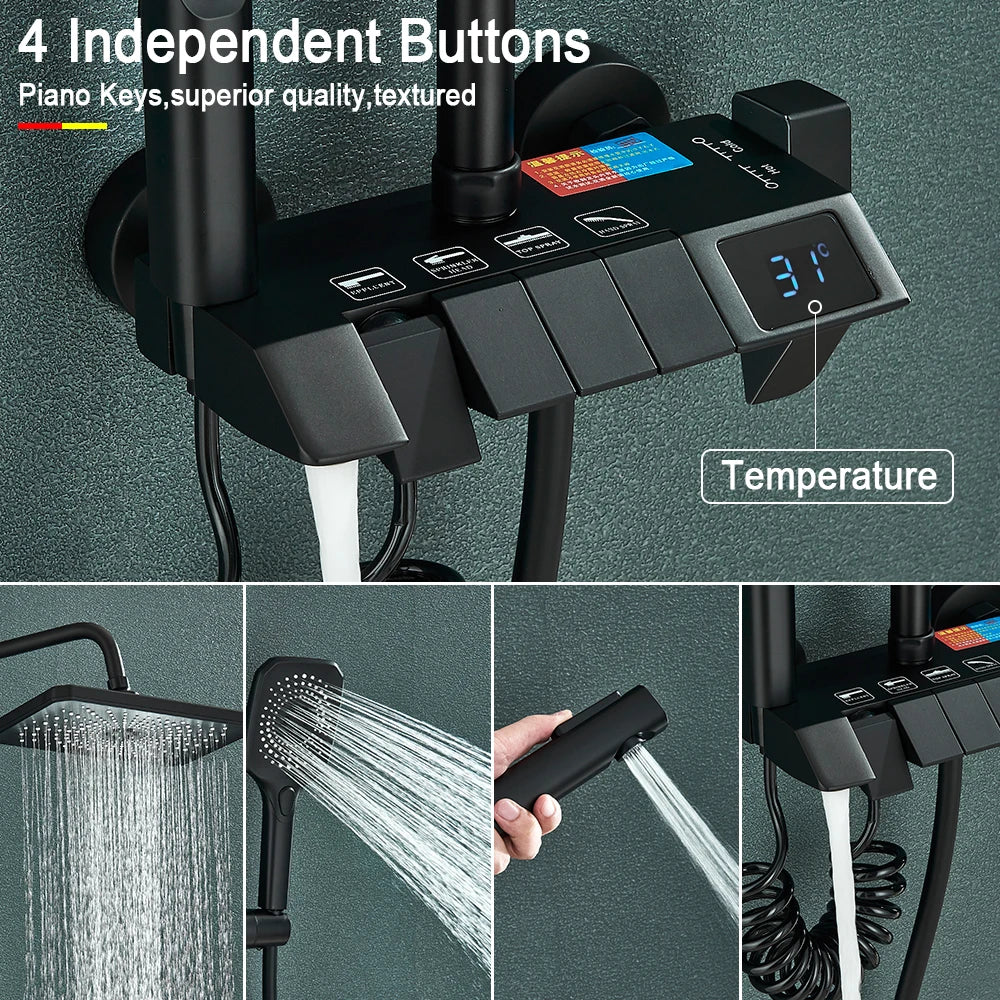 Elevate your daily shower routine with the Afralia™ Black Piano Digital Shower System. Experience luxury, style, and functionality in one
