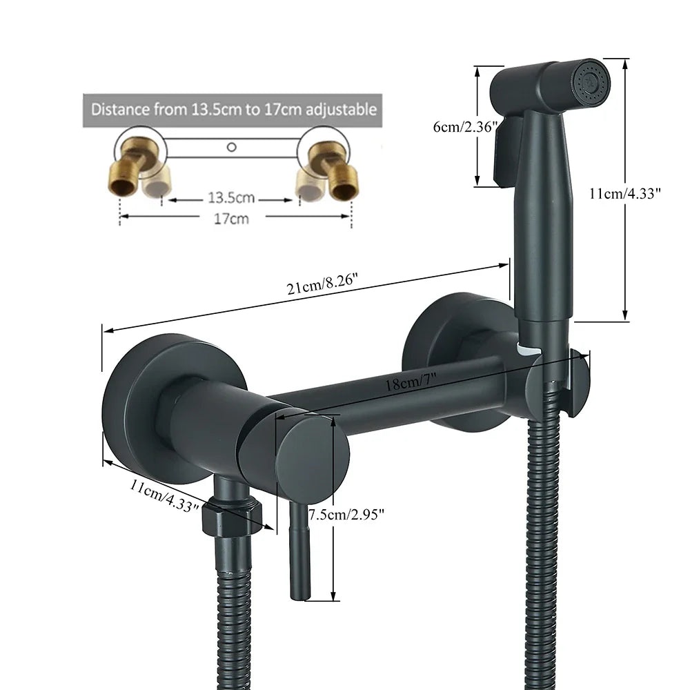 Enjoy the convenience of a cold and hot water mixer crane, allowing you to adjust the water temperature to your liking. The installation distance of 13.5cm-17cm provides flexibility in setting up your bidet sprayer for optimal comfort and functionality.