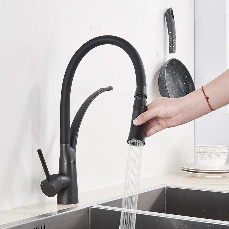 Designed for convenience and style, this faucet features a swivel spout and a pull-down function. The matte black finish adds a touch of luxury to your kitchen decor, making it a focal point of attention.