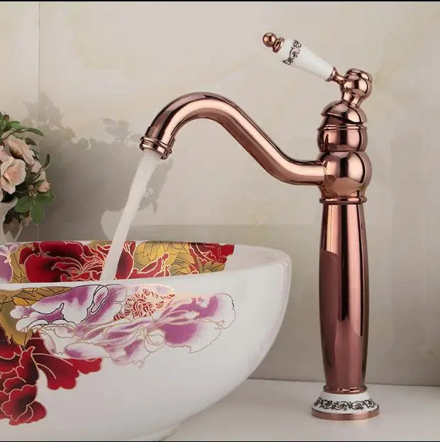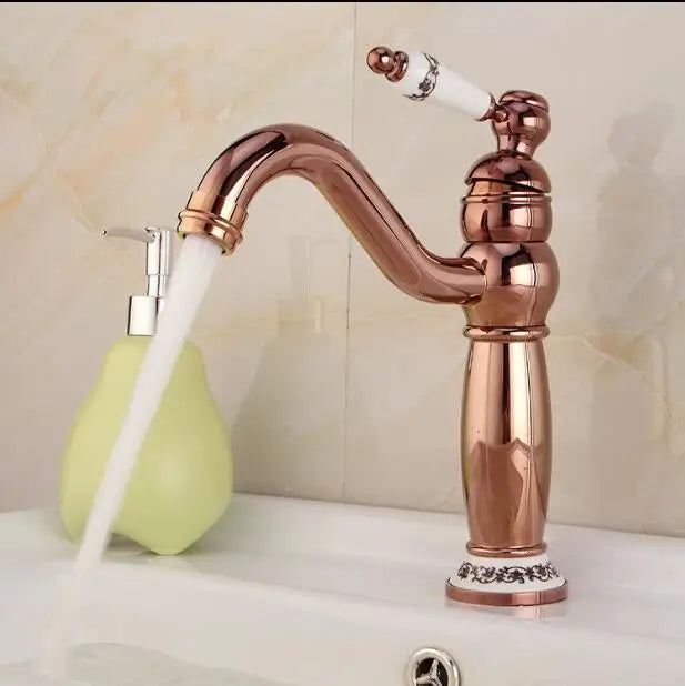 Afralia™ Modern Gold Rose Gold Finish Luxury Bathroom Sink Faucet
