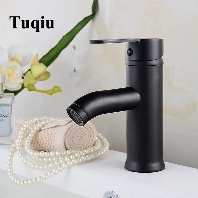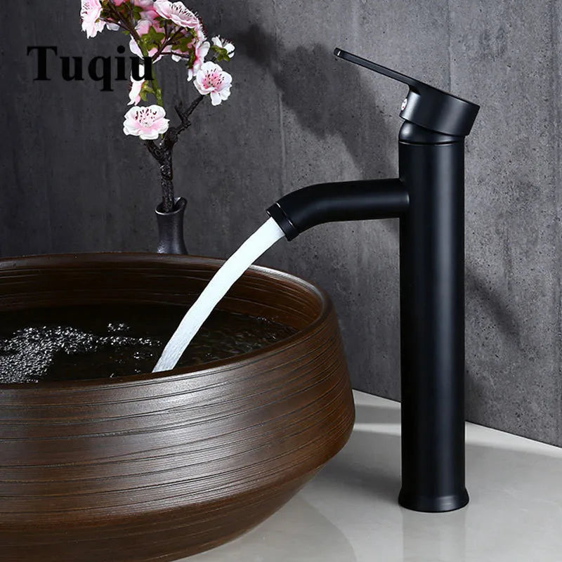 Afralia™ Black Single Handle Luxury Bathroom Faucet Switch Mixer Taps for Wash Basin
