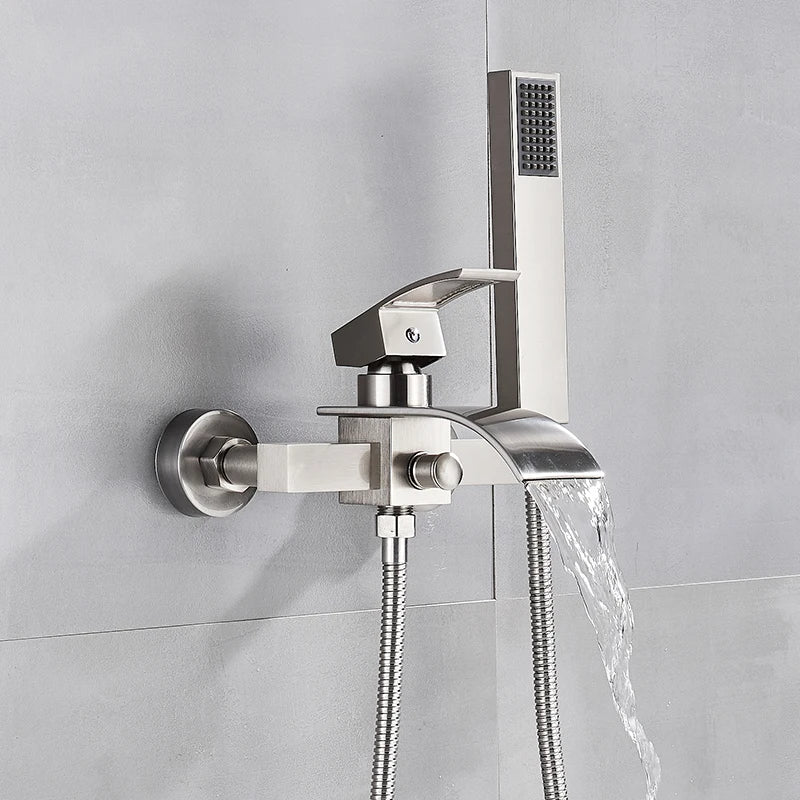Afralia™ Black Wall Mount Bathtub Shower Faucet with Waterfall Spout