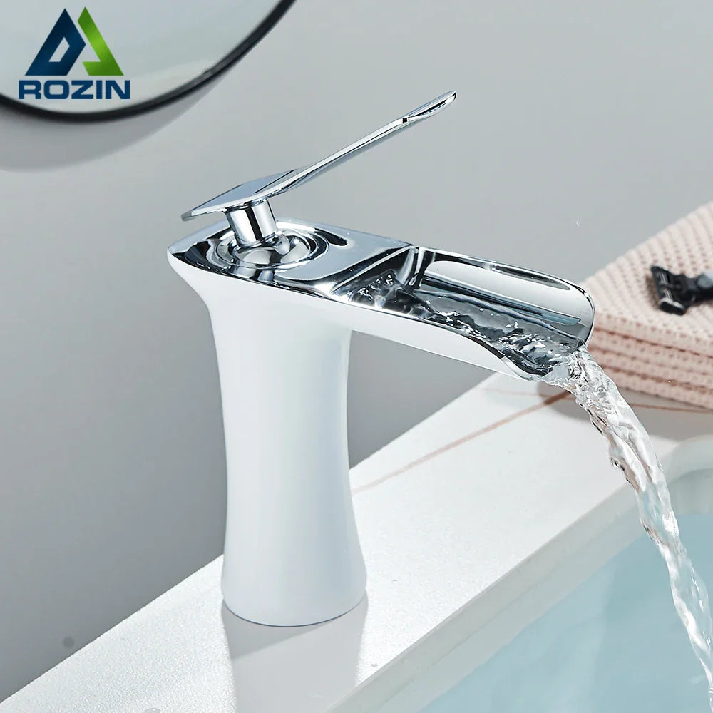 Afralia™ White Basin Faucet Waterfall Vessel Sink Mixer Tap - Chrome Finish