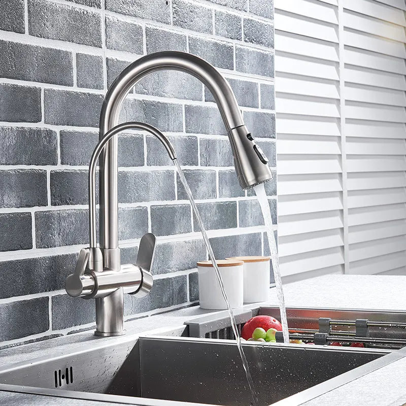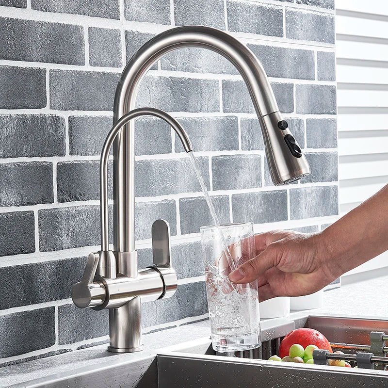 Upgrade your kitchen with the Afralia™ Dual Handle Water Filter Faucet and enjoy the benefits of clean, filtered water at your fingertips. Experience the perfect combination of style and functionality with this innovative and reliable faucet.