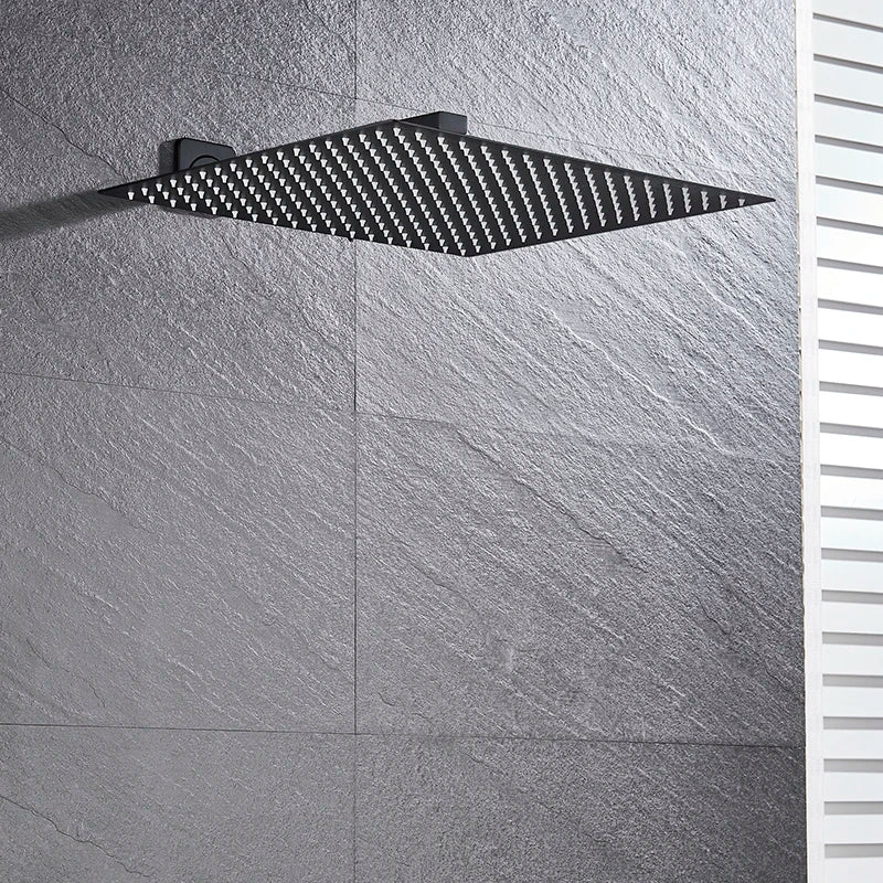 Immerse yourself in the gentle cascade of water from the oversized 16-inch square shower head, providing a rainfall experience that will rejuvenate your senses. The matte black finish adds a touch of elegance to your bathroom decor, while the black bronze shower arm complements the design with a sophisticated flair.