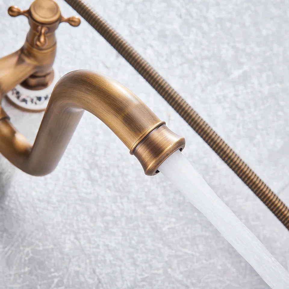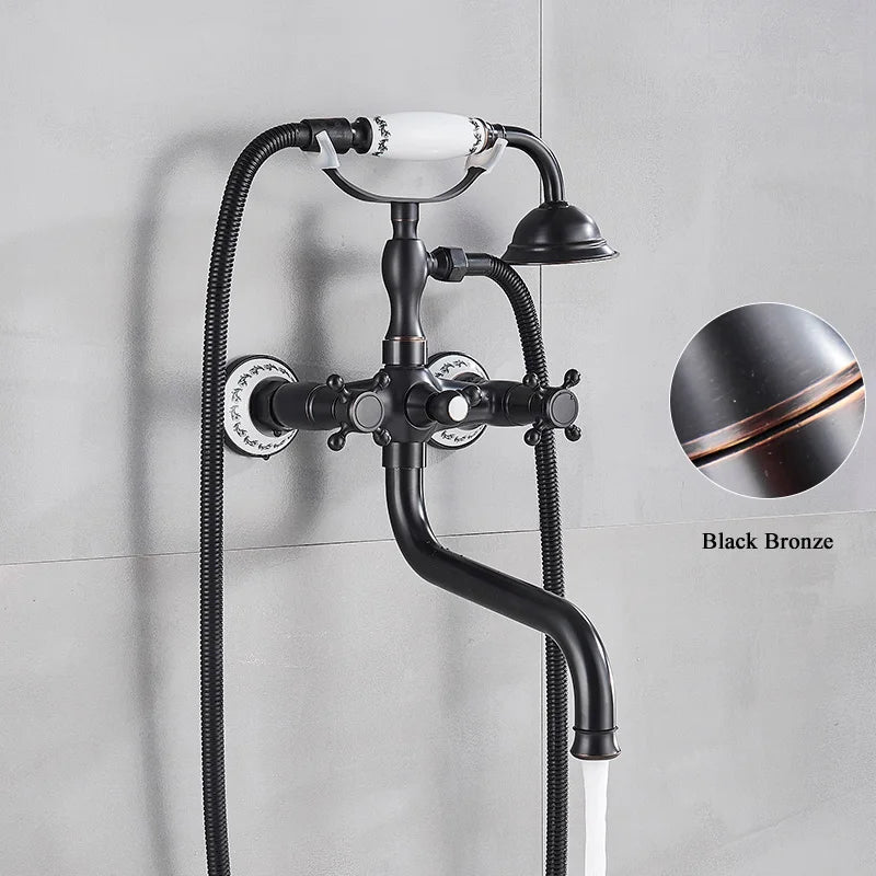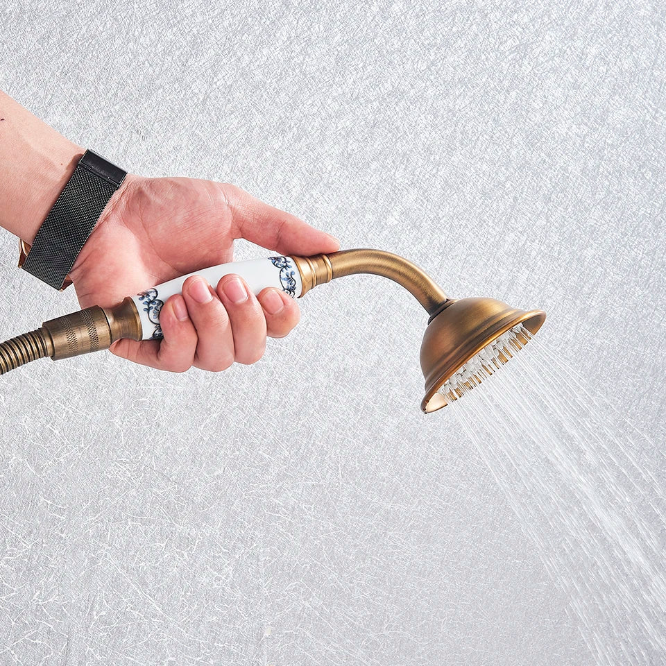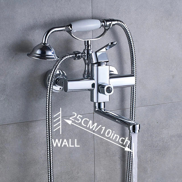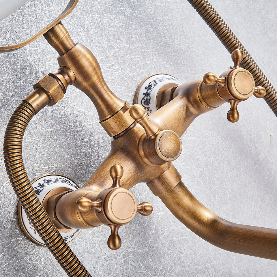 Afralia™ Antique Brass Wall Mount Bath Shower Mixer Tap with 30cm Spout Rotation