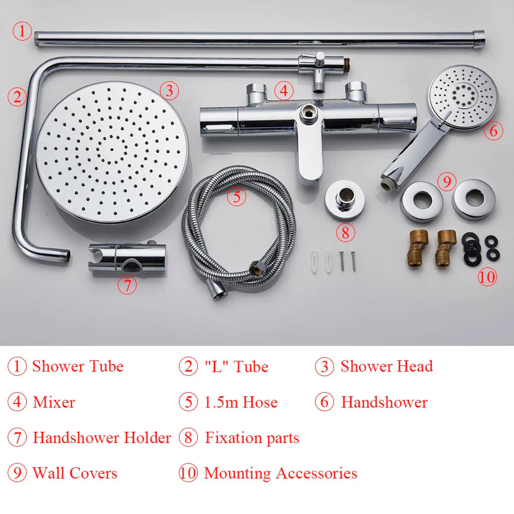 The innovative 3-way function switch allows you to easily switch between the shower head, hand shower, and bathtub faucet, providing versatility and practicality in one set. The thermostatic faucet ensures a consistent water temperature for a safe and comfortable shower every time.
