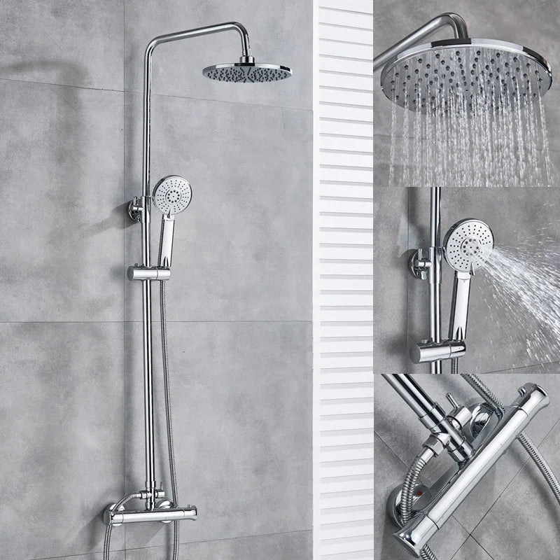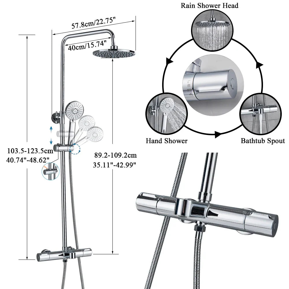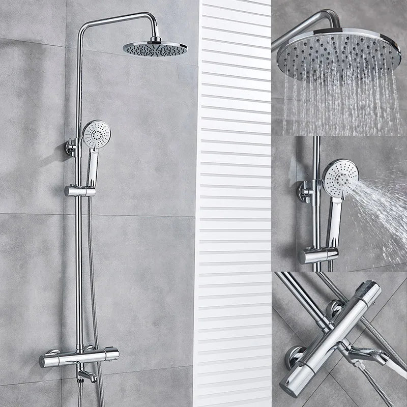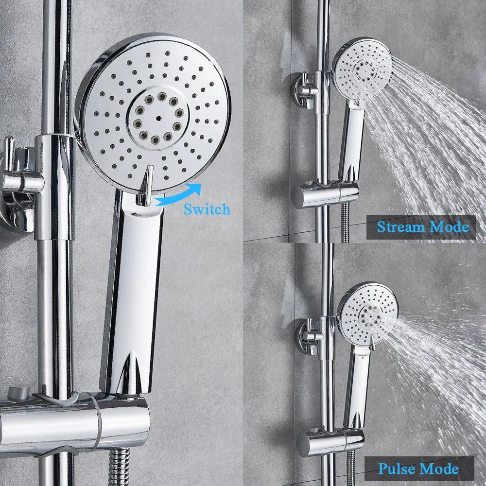 Experience the ultimate convenience with the Afralia™ Thermostatic Rainfall Shower Mixer Set, featuring a rotatable lifting type for added flexibility. The 8-inch shower head, made from A Grade ABS Plastic, delivers a luxurious rainfall experience, while the hand shower offers two modes – stream mode and pulse mode – for a personalized shower experience.