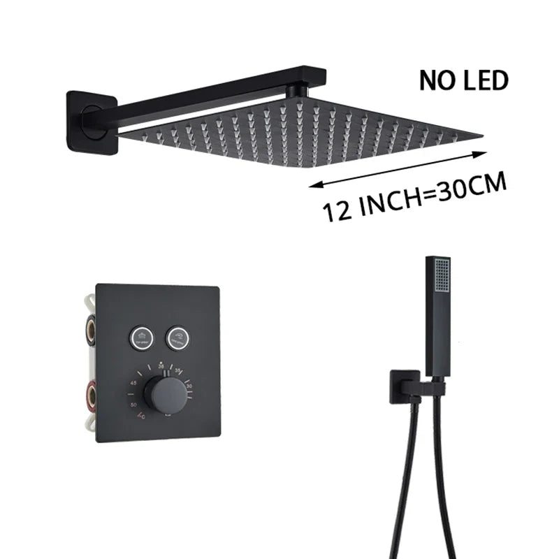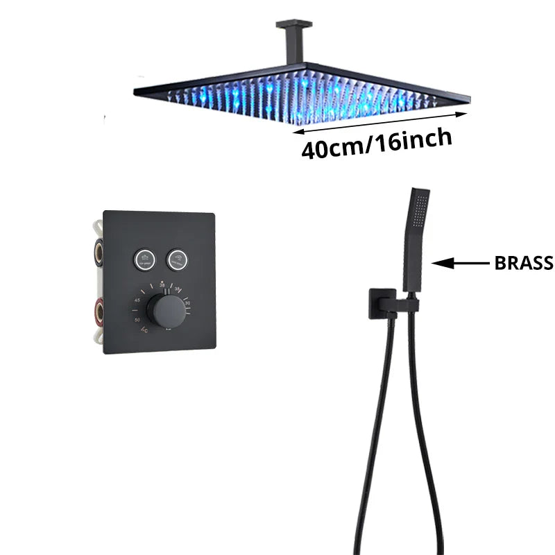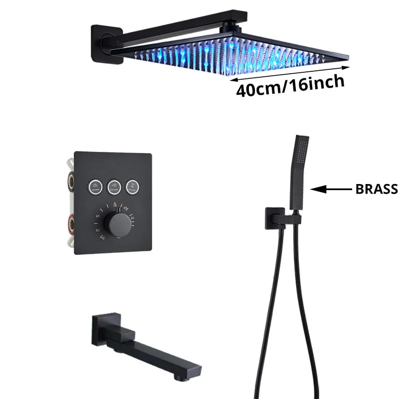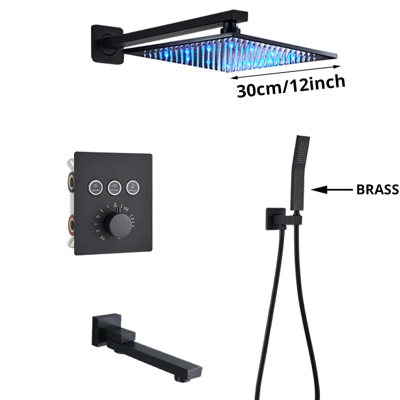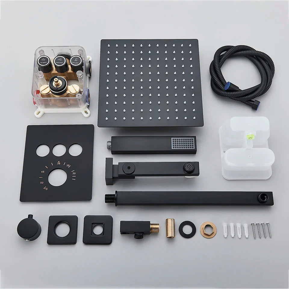 Indulge in the luxurious experience of the Afralia™ Gold Thermostatic Rainfall Shower Faucet Mixer Set for your bathroom. This exquisite shower set boasts a sleek and contemporary design, perfect for elevating the style of your space. Crafted with high-quality brass and featuring a stunning blackened finish, this shower faucet mixer set exudes elegance and sophistication.