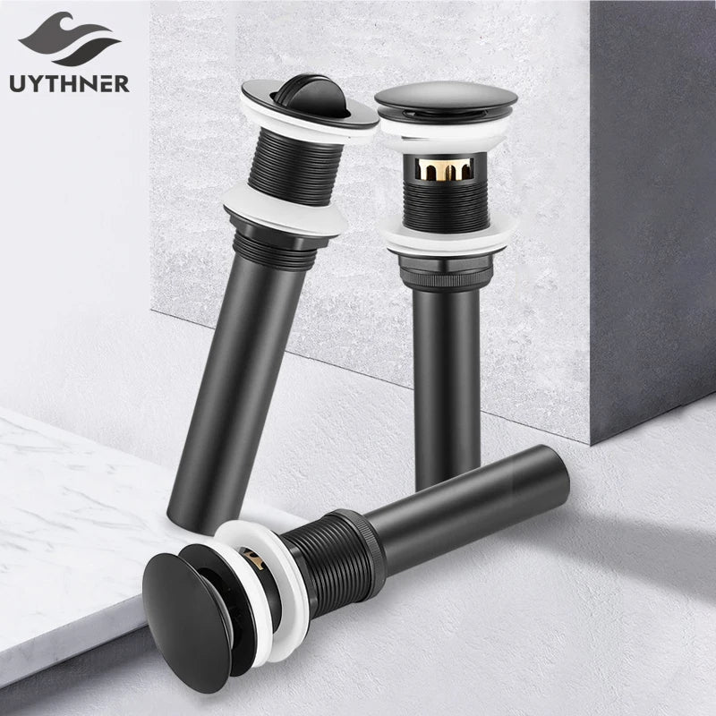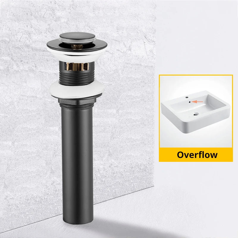 Introducing the Afralia™ Brass Basin Sink Pop Up Drain in Black Gold. Elevate your bathroom with this elegant and functional pop-up drain, designed to add a touch of luxury to your basin.