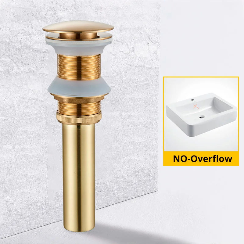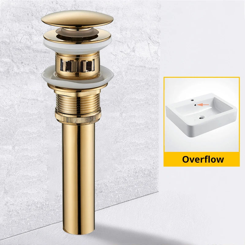 Available in three stunning color options - Matte Black/Chrome Polish, Antique Brass/Gold Polish, and Rose Gold/Brushed Gold, this pop-up drain adds a touch of luxury to your bathroom decor.