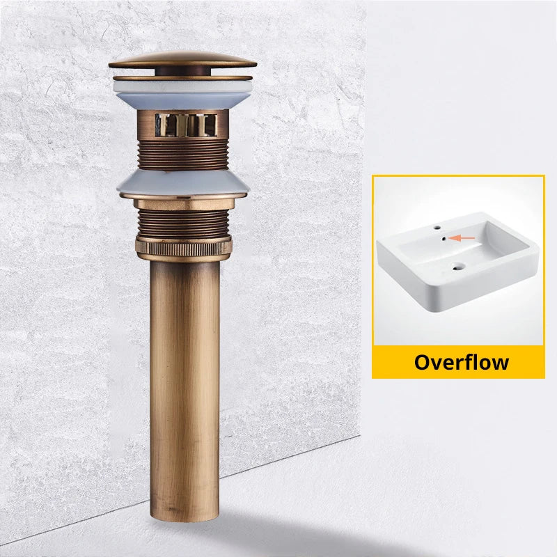 The Afralia™ Brass Basin Sink Pop Up Drain comes with a stainless steel drain pipe and a round carved cover waste drain, making it a practical and stylish addition to your bathroom fixtures. The inclusion of a mesh siphon for the sink adds to its functionality.