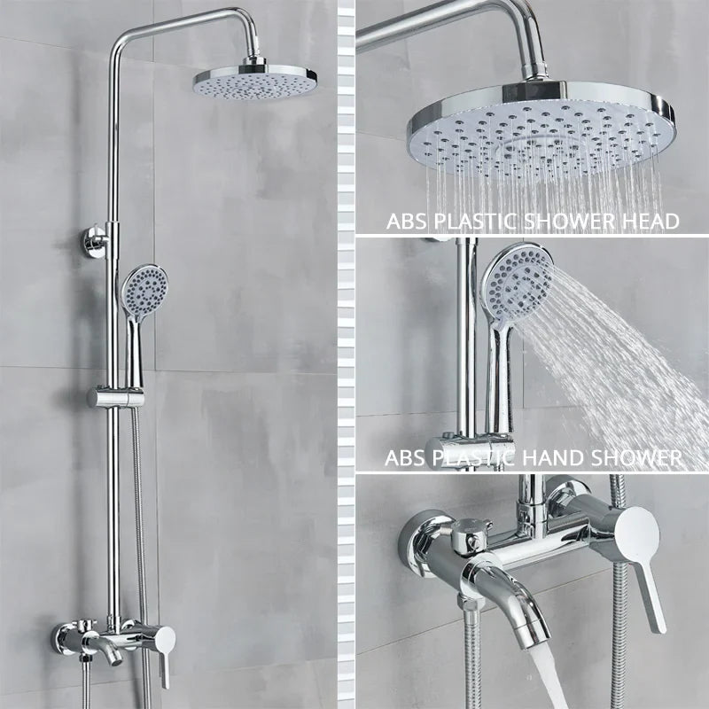 This premium shower system features a single handle for easy temperature and water flow control, certified for quality and safety by CE standards. The brass surface finishing exudes a lustrous polish that will enhance the beauty of your bathroom decor. The durable ceramic valve core ensures long-lasting performance, while the rotatable lifting design allows for customizable water direction.