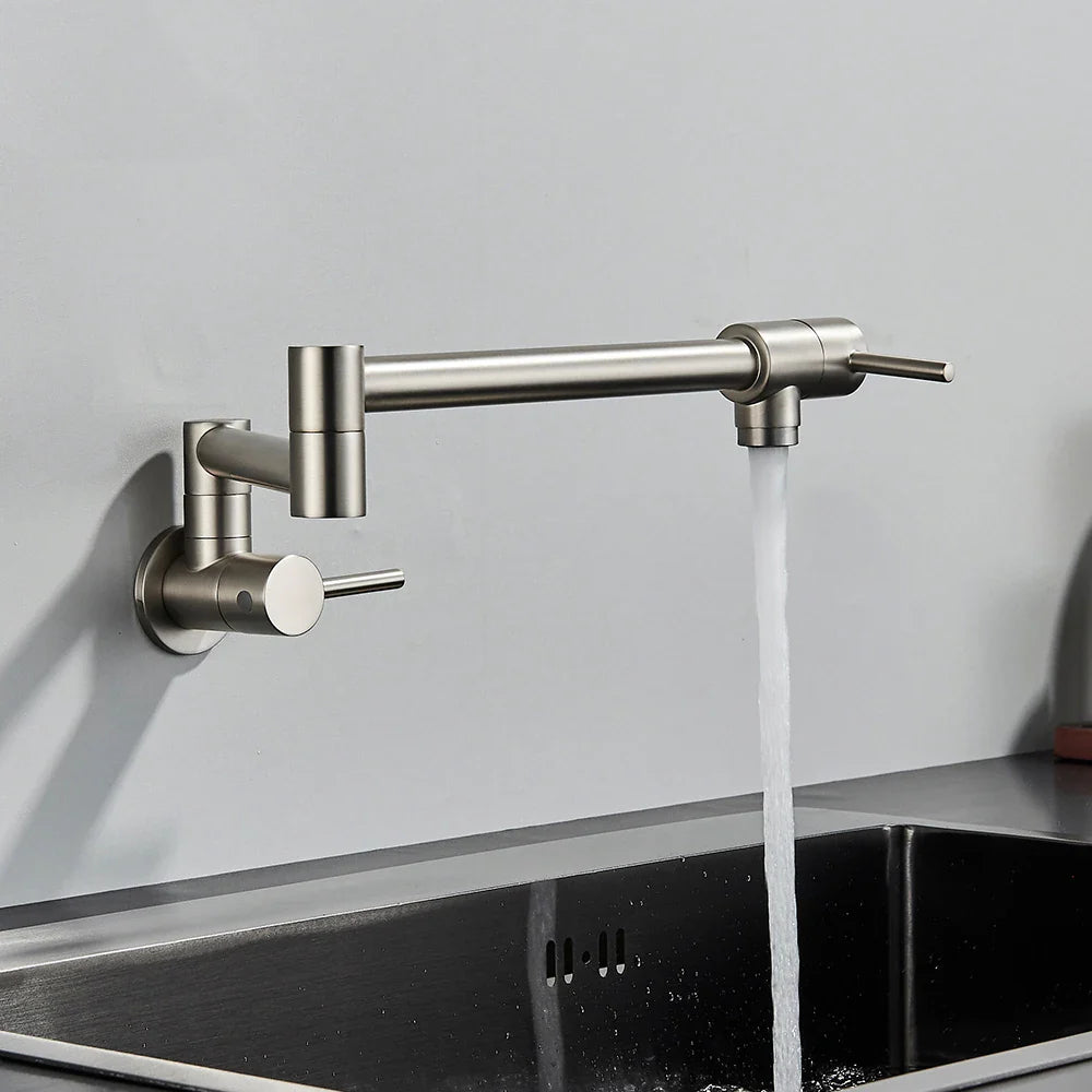 The Afralia™ Swivel Kitchen Sink Faucet is a wall-mounted kitchen faucet that adds a touch of sophistication to your space. The brass material and brushed finish make it a stylish and durable choice for your kitchen.