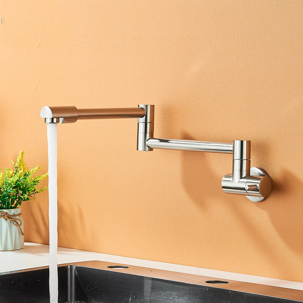With a single lever control and a single handle design, this wall-mounted faucet is easy to use and install. The ceramic valve core ensures long-lasting performance, while the 360-degree rotatable spout provides flexibility and convenience in your daily kitchen tasks.