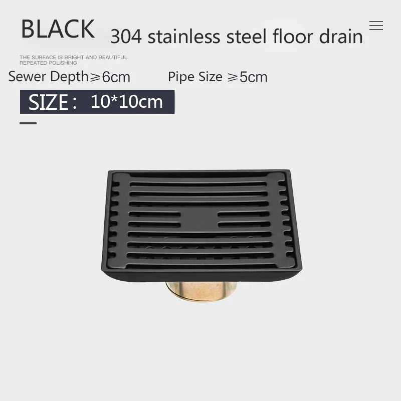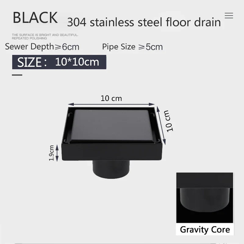 Afralia™ Matte Black Square Floor Drain 10*10cm - Bathroom & Shower Deodorant Waste Strainer