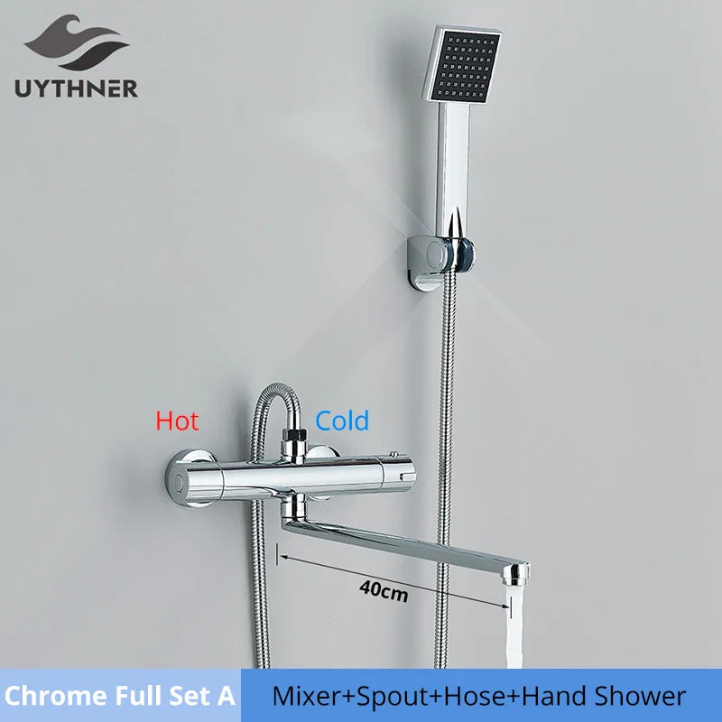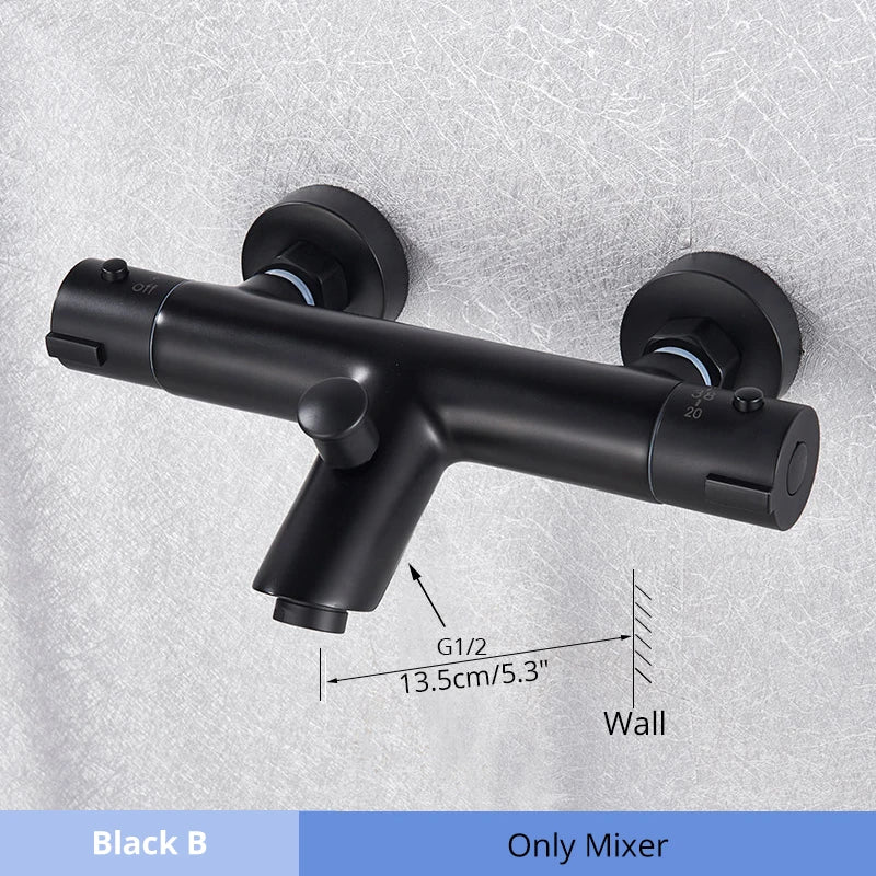 Transform your bathroom into a luxurious sanctuary with the Afralia™ Thermostatic Shower Set in Black/Chrome. This elegant shower set is designed to bring a touch of contemporary style to your space while providing the ultimate showering experience.