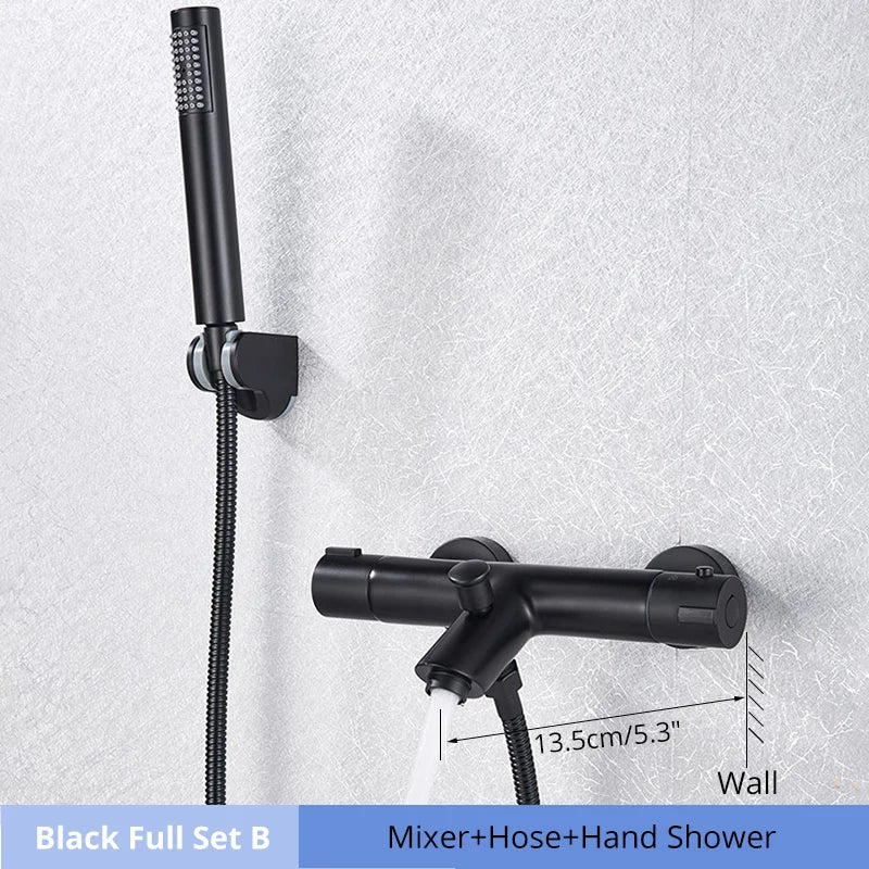 Upgrade your bathing experience with the Afralia™ Thermostatic Shower Set in Black/Chrome. Whether you're looking for a bathtub faucet, bathtub mixer, or bath shower faucet, this mixer tap is sure to impress. Say goodbye to ordinary showers and hello to a new level of luxury with Afralia™.