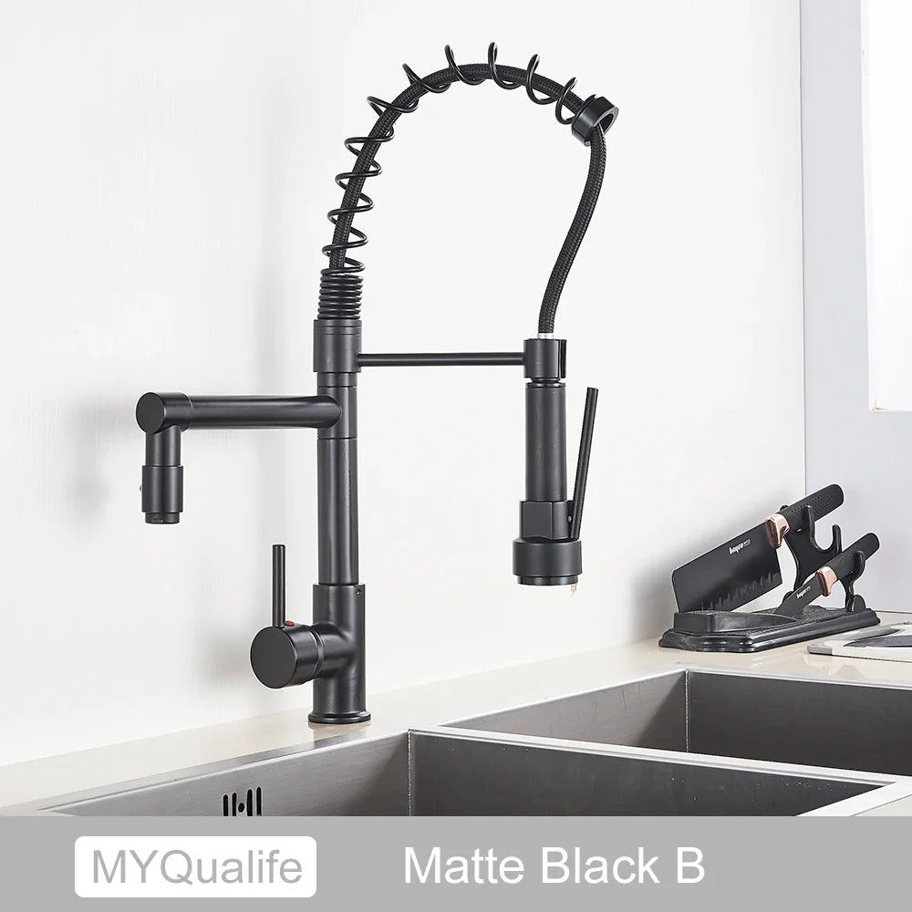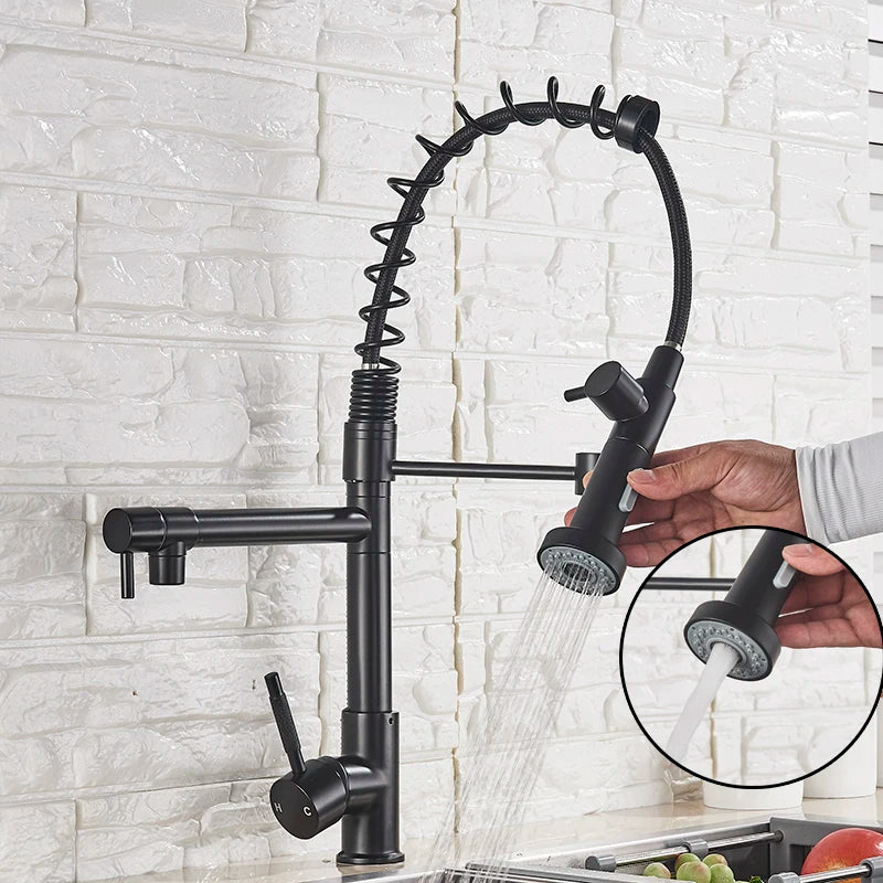 Afralia™ Dual Spout Kitchen Sink Faucet - Matte Black Finish, Deck Mount Spring Mixer