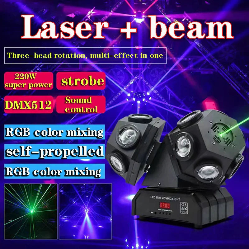 Afralia™ 3-Head RGBW LED Beam Moving Head & Laser Stage Light for DJ Disco Party