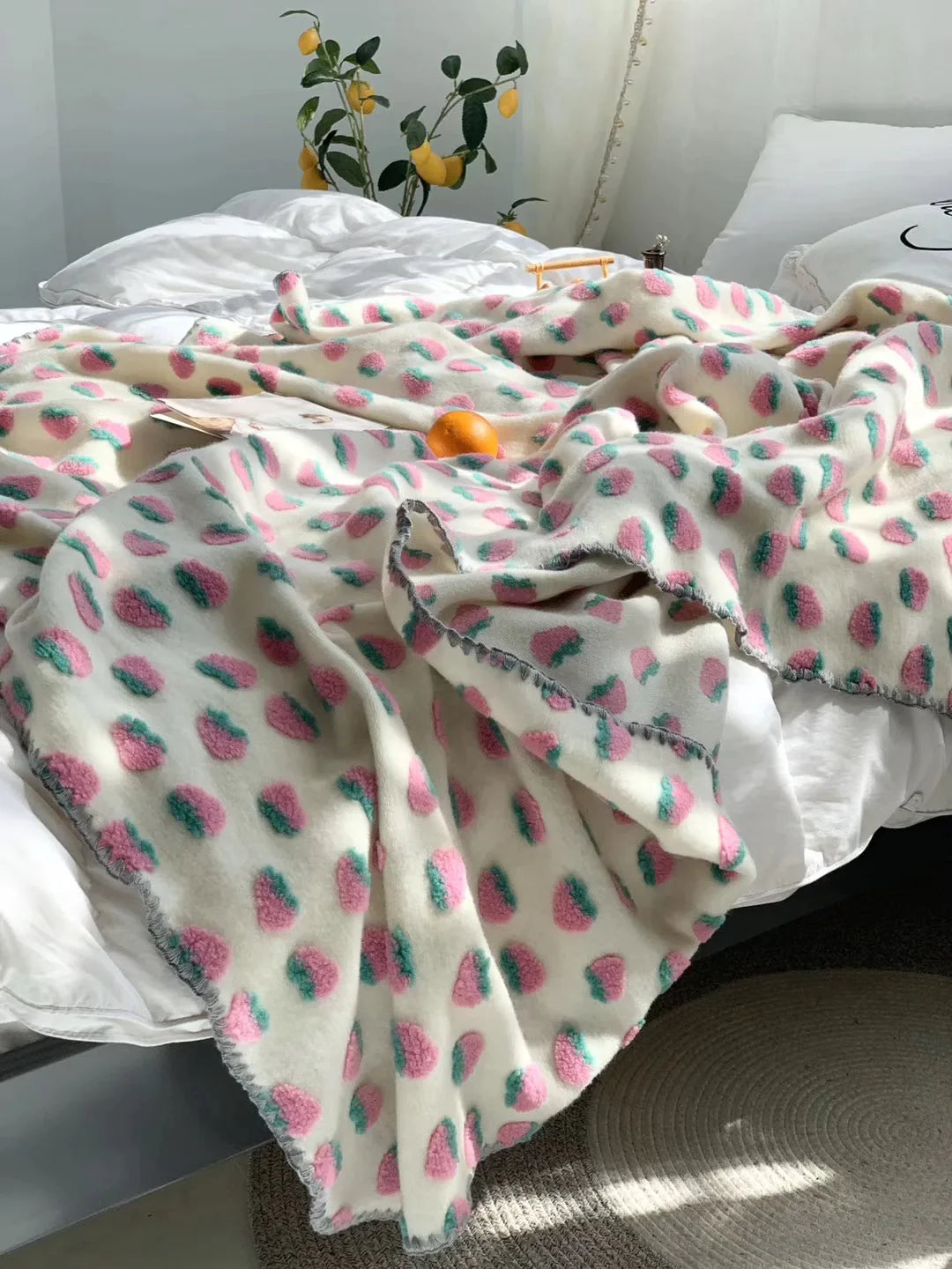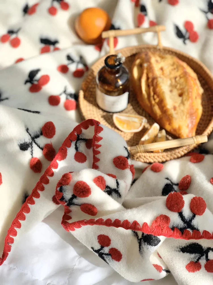 Afralia™ 3D Cherry Kids Wool Blanket - Kawaii Sweet Girl Crib Bedding