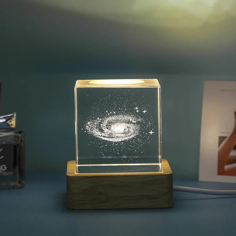 Crafted from high-quality crystal material, this night light is not only durable but also beautifully designed. The glass cube design gives off a mesmerizing effect, reminiscent of a galaxy far, far away. Perfect for creating a magical atmosphere during the holidays or any special occasion.