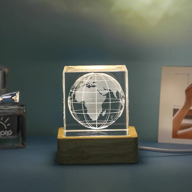 Illuminate your space with the Afralia™ 3D Moon Solar Galaxy Crystal Glass Cube Night Light Desktop Decor. This exquisite night light features a captivating rectangular shape that adds a touch of elegance to any room. With built-in LED bulbs, this night light radiates a soft and soothing glow, creating a warm and inviting ambiance.