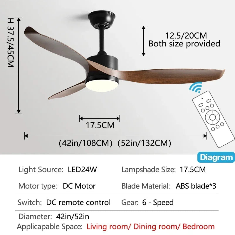 Afralia™ 52" Black Ceiling Fan Light with Remote Control for Living Room, Restaurant, and Household