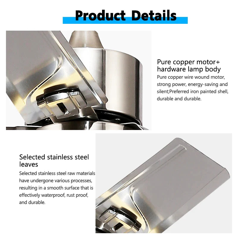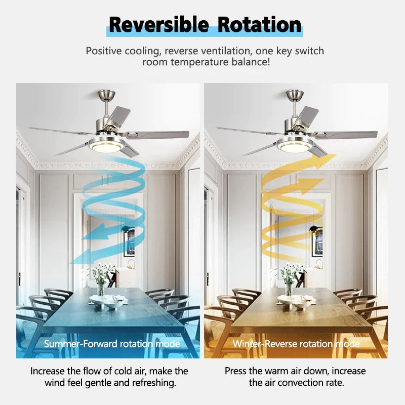 Introducing Afralia™ 52" Stainless Steel Blade Ceiling Fan with LED Light and Remote Control, a masterpiece of modern design and functionality. This ceiling fan is a perfect blend of style and innovation, providing both illumination and cooling breeze to any room in your home.