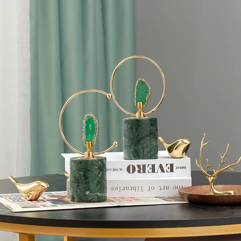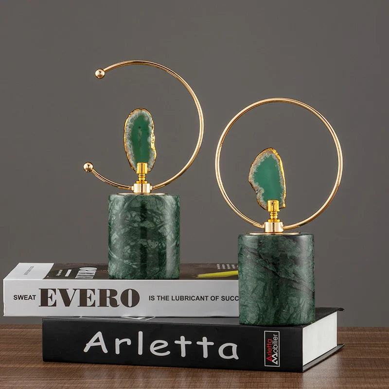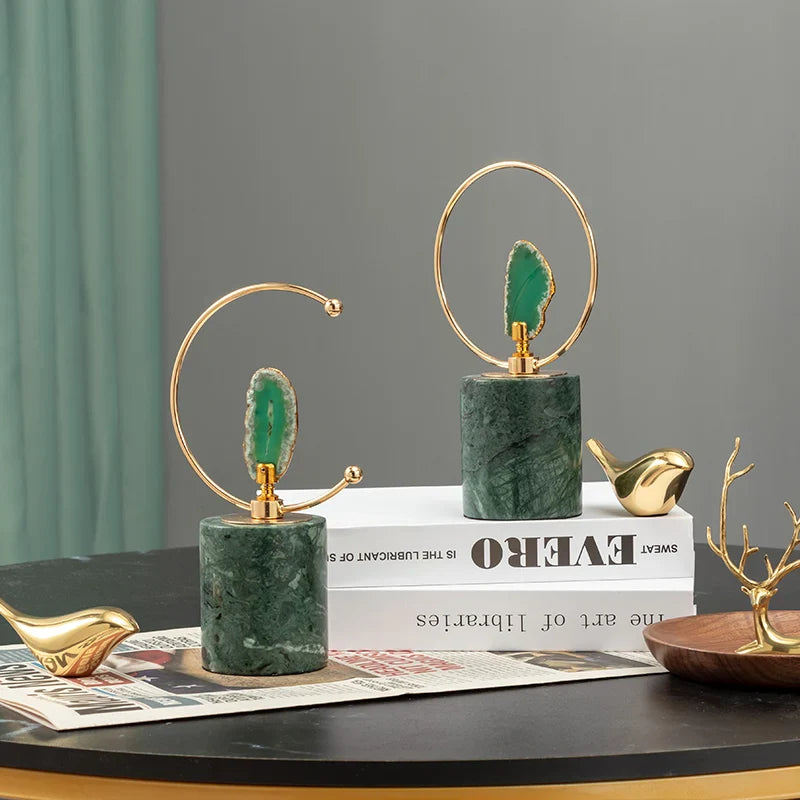 Afralia™ Agate Crafts Marble Base Art Sculpture for Living Room Bookcase