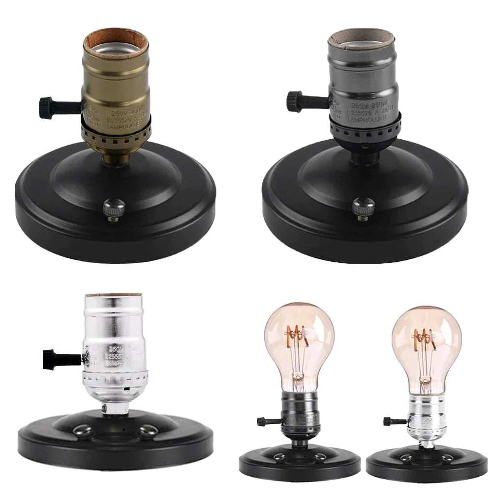 Afralia™ Aluminum Vintage Retro E27 Socket Holder with Switch for Edison Bulb