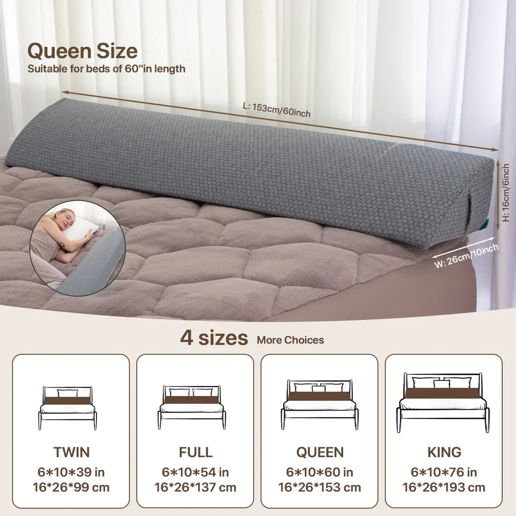 Afralia™ Bed Wedge Pillow Memory Foam Mattress Gap Filler with 2 Large Side Pockets