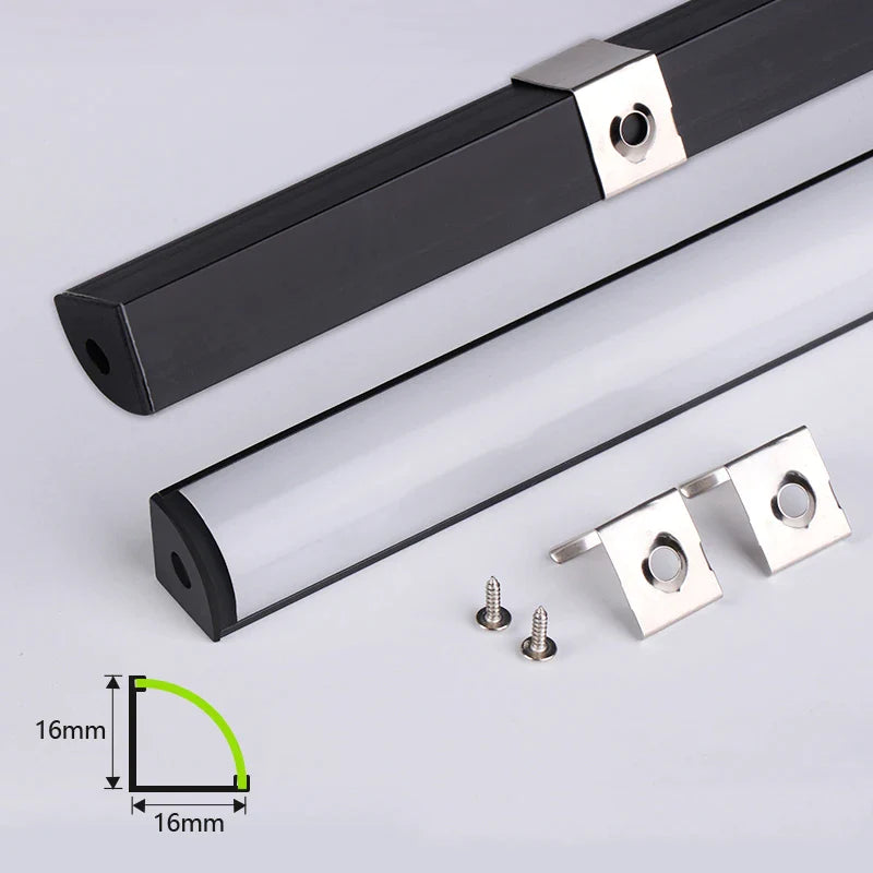 Afralia™ Black Aluminum V-Type LED Profile with Milky Cover for Strip Lights