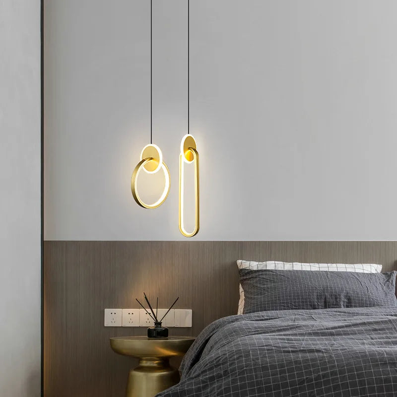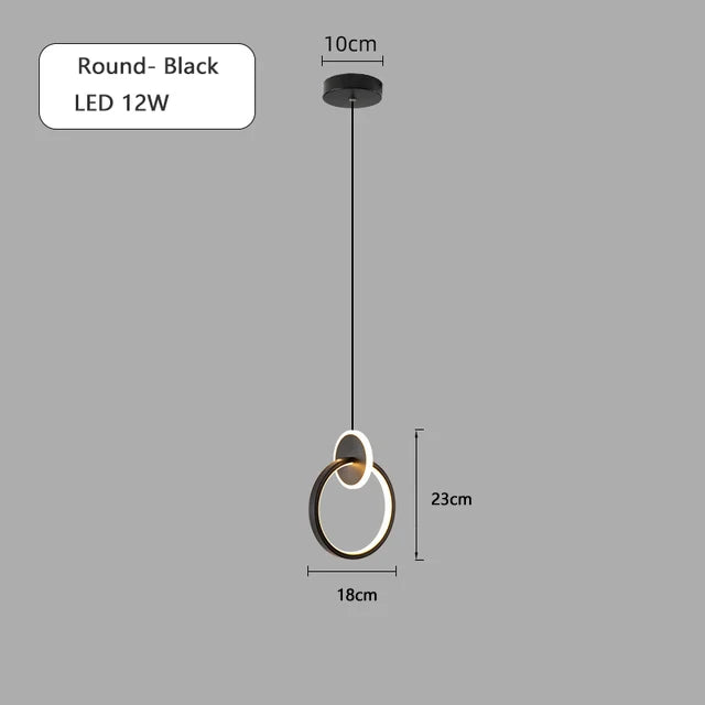 Afralia™ Black Gold Round Pendant Light Chandelier for Bedside Long Cable 12W