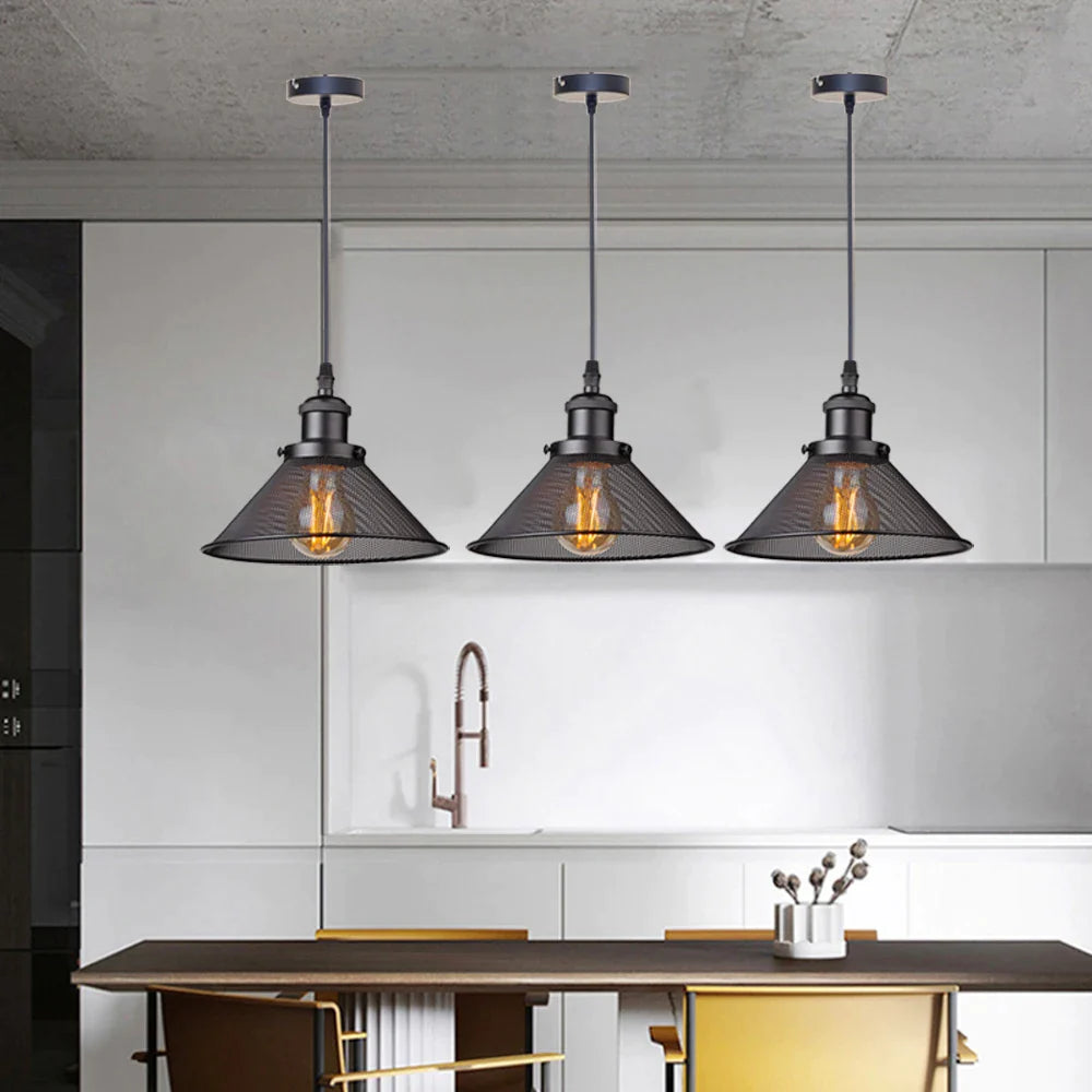 Afralia™ Black Iron Cage Farmhouse Pendant Light Fixture for Kitchen Island, Dining Room, Hallway