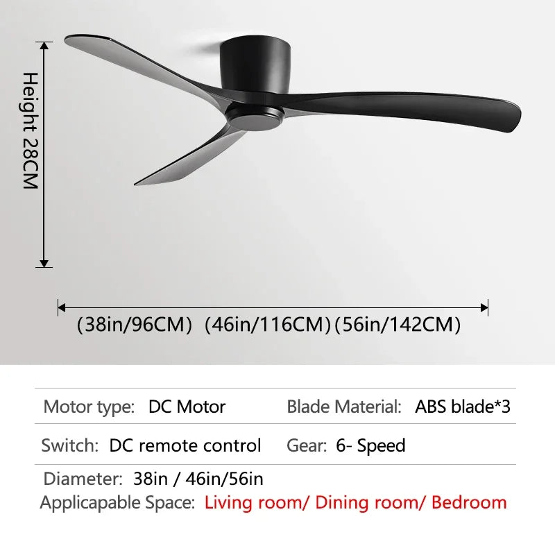 Afralia™ Black Modern Low Profile DC Ceiling Fan with Remote Control, Strong Airflow