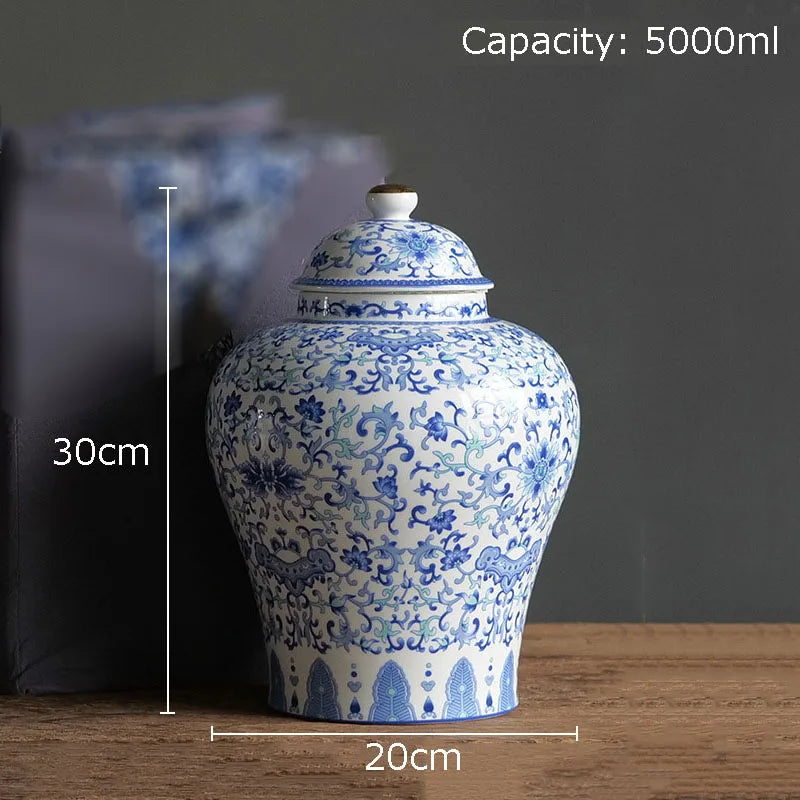 Introducing the Afralia™ Blue & White Porcelain Jar with Gold Plating, a sophisticated addition to your home decor and storage solutions. This elegant ceramic jar is designed for both practicality and style, making it a perfect choice for organizing sundries in any room.