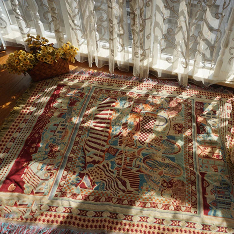 Afralia™ Bohemian Knitted Sofa Cover with Tassels - Soft Double Sided Couch Blanket