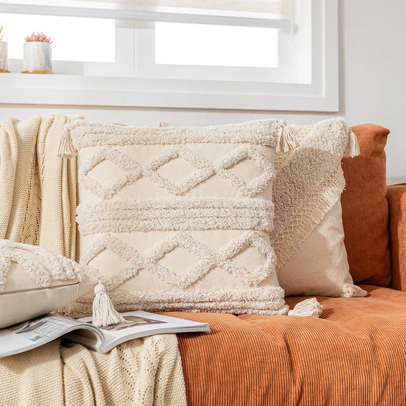Afralia™ Boho Cotton Tassel Pillow Cover 45x45cm/30x50cm for Home Decor